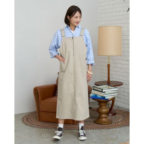 スタイリングの幅を広げるサロペットスカートです。