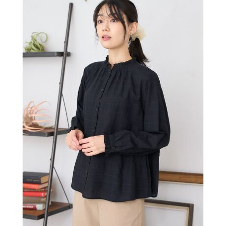 織りによって表現されたシャドーチェックが繊細かつ上品な表情を見せる一枚です。