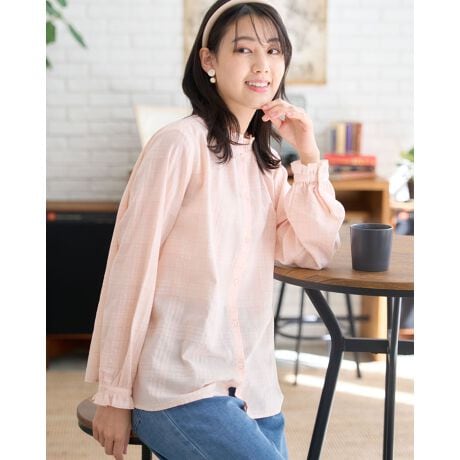 薄手の生地感のため、一枚着としての着用はもちろん、特にニットベストやカーディガンなどのインナーとしてコーディネートがおすすめです。