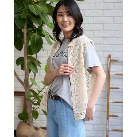 7cmほどのダイヤモチーフで構成された透かし編みのニットジレ。
