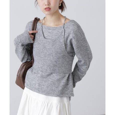 ルーズプルオーバーとホルターネックビスチェのSET。それぞれ単品使いも可能ですが、プルオーバーの上からビスチェをレイヤードしたスタイルがおすすめです。ウール混のモチモチとした肌触りで暖かみのある糸を使用。プルオーバーはさらりとした天竺編み、ビスチェは伸縮性のあるリブ編みです。ホルターネックはバストでとまるよう背面に平ゴムを内蔵。デザイン性があるニットなので、デニムパンツやチノパンツ、スウェットパンツとのスタイリングがおススメです。※モデルの着用画像の場合、光の当たり具合により、実際の色味と異なって見えることがございます。色味は、商品単体の画像をご参照ください。