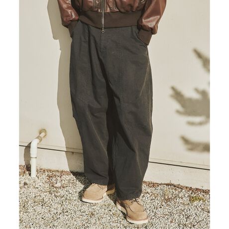 ワークパンツをベースに、現代的なボリュームバランスへと再構築したイージーパンツ。