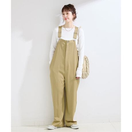 上品な光沢感と程よい肉厚感のあるサテン素材を使用したサロペット。