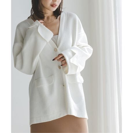スムースタッチな接結編みのニット地を使用したカーディガン。