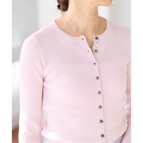 繊細なリブ編みが上品な印象を与える、ハイゲージのニットカーディガン。