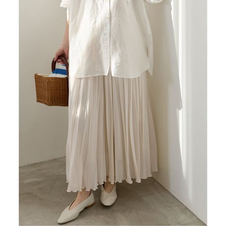 プリーツは広がりすぎず、ストンと落ちるシルエットが特徴。