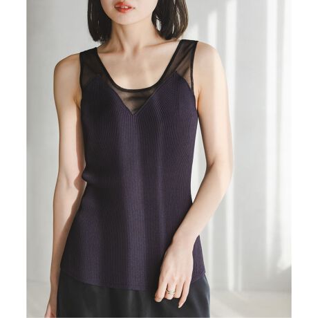 NOBLEで高い人気を誇るジャケットとの新しいスタイル提案で生まれたシアー素材とニットのコンビタンクトップ。