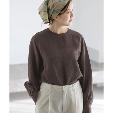 デザインはノーカラーのコンパクトなブラウス。