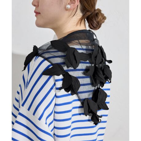 花びらを思わせる繊細なディテールが目を惹く、チュール素材のスカーフ。