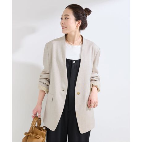 上品なツヤ感とMIX感のある素材を使用したカラーレスジャケット。