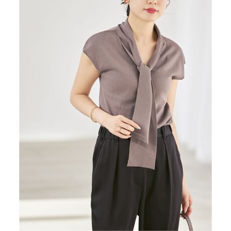 春らしいカラー展開と首元のボウタイが華やかさが際立つニットトップス。