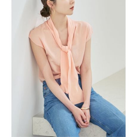 春らしいカラー展開と首元のボウタイが華やかさが際立つニットトップス。