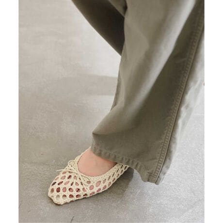 カジュアルに履けるバレエデザインにメッシュを落とし込み、カモノハシスクエアのトウデザインでトレンド感をプラスしました。