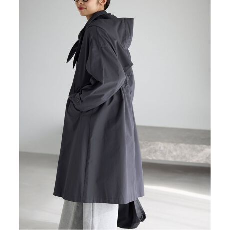 フードを付けてボーダーTシャツやデニムと合わせたフレンチカジュアルなスタイルから、きれいめな通勤スタイルまで、季節の変わり目に幅広く活躍する一着です。