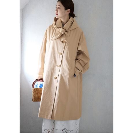 フードを付けてボーダーTシャツやデニムと合わせたフレンチカジュアルなスタイルから、きれいめな通勤スタイルまで、季節の変わり目に幅広く活躍する一着です。