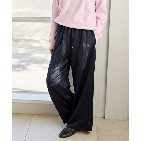 アンティークのような風合いを感じさせる、サッカー組織のサテン素材を使用したイージーパンツ。