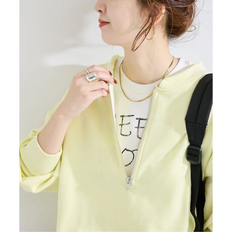 裏毛素材を使用したトレンド感あるハーフジップ仕様のスウェットトップス。