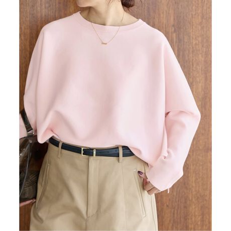 細番手のコットンとポリエステルをスムース編みにし、しっかりとした素材感の一枚。