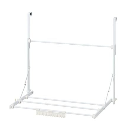 ●ドアに掛けて干せる物干し。フェイスタオルやハンガーに掛けた衣類も干せます。