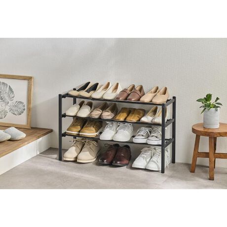 LIV PLUS シューズラック 伸縮 3段 靴 収納 玄関 ブラック NY-361