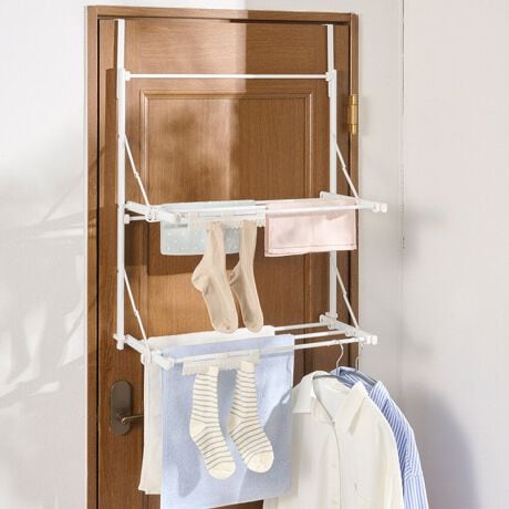 LIV PLUS ドアハンガー 2段 フック 伸縮 折り畳み 室内干し 軽量 ホワイト NY-391