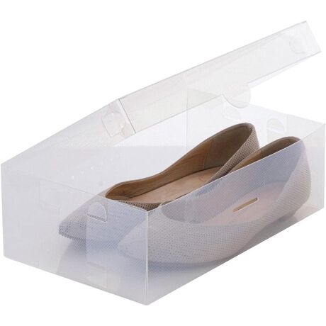 ●クリアケースなので中身の確認がしやすいシューズボックス。パンプスやローファーなどの収納に最適。