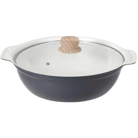 LIV PLUS 卓上鍋 両手鍋 28cm ふた付 グレー NQ-0415 ビストロ・セラミック