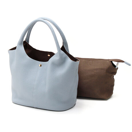 上品で洗練されたデザインが魅力の2WAYバッグ。コンパクトながらも収納力抜群。中央にはファスナー付きポケットを備え、貴重品をしっかりと収納可能。両サイドにはオープンスペースがあり、荷物の整理がしやすい構造です。インナーポーチ付きなので、貴重品の収納も安心。ハンドルとショルダーストラップの2WAY仕様で、手持ち・肩掛けのスタイルを服装や容量に合わせて仕様を変えられます。シンプルで洗練されたデザインは、通勤やお出かけ、フォーマルシーンにもぴったりです。