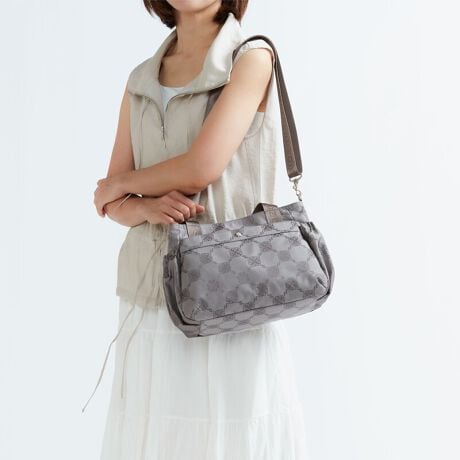 エレガントな素材感に対して、充実したポケット等の機能性で小旅行からデイリーまで幅広く使えます。