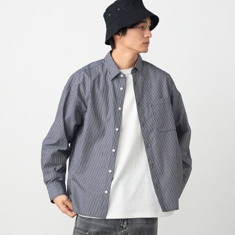 背中に入ったブランドロゴとメッセージ刺繍がデザインポイントのストライプのレギュラーカラーシャツです。