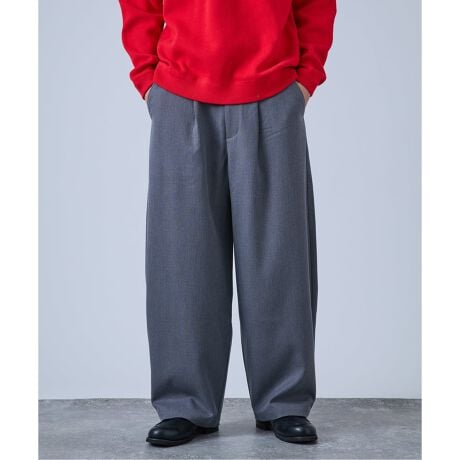 トラディショナルな要素をベースに、遊び心のあるフォルムに仕上げた「バレル(樽型)」ワイドスラックス**。