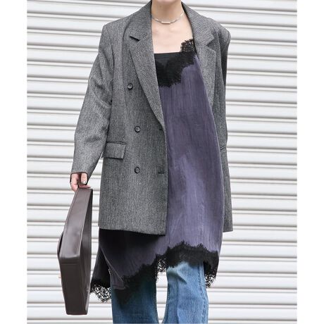 ジャケットのインナー使いや、ニットやカットソーとレイヤードするだけでこなれ感のある今っぽいスタイリングが完成します。