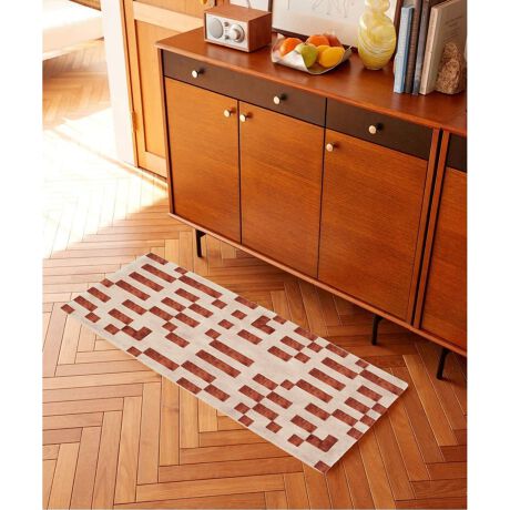 上質な素材とデザイン性を兼ね備えた、ランダムに配置されたチェッカー柄が特徴のラグです。