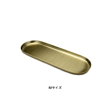 光沢のあるゴールドカラーが高級感のある、シンプルでモダンな金属製のトレイです。シンプルなデザインなので、インテリアのスタイルを選ばず幅広い用途で使用できます。他のサイズのトレーと重ねて使用しても◎