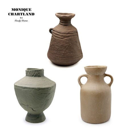 素朴でクラフト感のあるベースです。それぞれの形が異なり、アンティーク感やハンドメ イド風の仕上がりが印象的で、何も飾らずそのままでも存在感があります。アルミニウム 製なので割れにくく頑丈です。