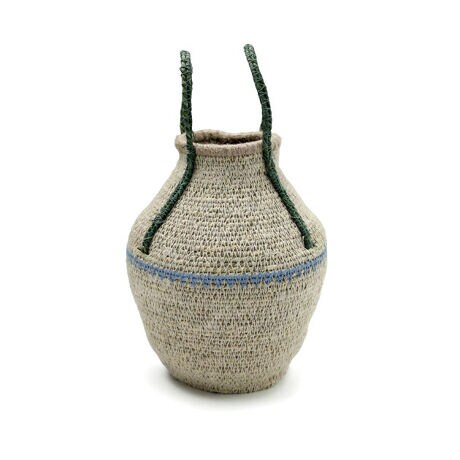 シーグラスでできたシャープな輪郭が特徴のポットバスケットです。中にドライフラワーを入れてフラワーベースにしたり、棚やテーブルに置いてインテリアのアクセントとしてもご使用いただけます。