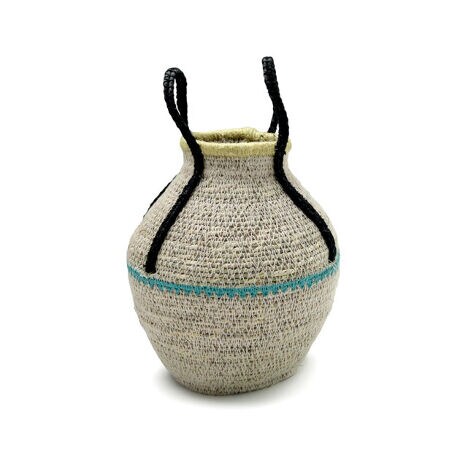 シーグラスでできたシャープな輪郭が特徴のポットバスケットです。中にドライフラワーを入れてフラワーベースにしたり、棚やテーブルに置いてインテリアのアクセントとしてもご使用いただけます。