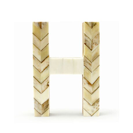 動物の骨を利用して作られたアルファベットのオブジェ。天寿を全うした水牛の骨が、職人の手によって生まれ変わりました。イニシャル、誕生日、ラッキーナンバーなど、誰しも思い入れのあるアルファベットや数字を持っているのではないでしょうか。骨という身近ながら普段目にすることのない素材は、日常を特別な雰囲気にしてくれます。結婚式のウェルカムディスプレイや開店祝い、お店のディスプレイなどにもおすすめです。背面にはDリングが付いているので、吊り下げることができます。