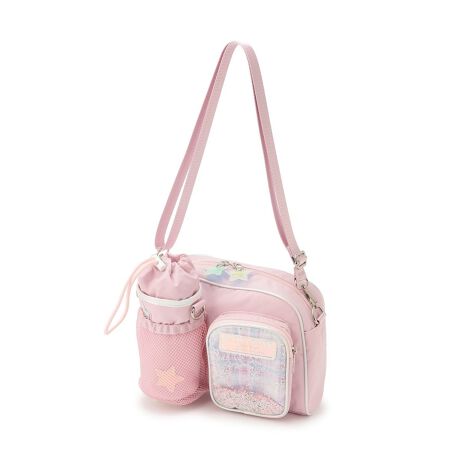お出かけに便利なペットボトル入れがついた2WAYショルダーバッグです。フロントポケットはメゾピアノオリジナルチェック柄にキラキラとしたラメやスパンコールを閉じ込めました。オーロラなツヤのロゴパッチやボトルケースの星ワッペンもポイント。ショルダーは取り外し可能で、ペットボトル入れにつけ替えて2WAYでご使用いただけます。≪重さ≫F/約282g