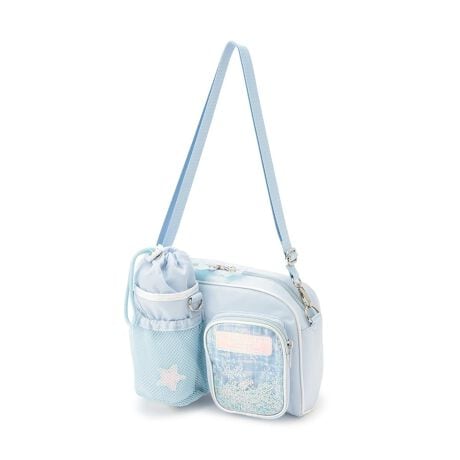 お出かけに便利なペットボトル入れがついた2WAYショルダーバッグです。フロントポケットはメゾピアノオリジナルチェック柄にキラキラとしたラメやスパンコールを閉じ込めました。オーロラなツヤのロゴパッチやボトルケースの星ワッペンもポイント。ショルダーは取り外し可能で、ペットボトル入れにつけ替えて2WAYでご使用いただけます。≪重さ≫F/約282g