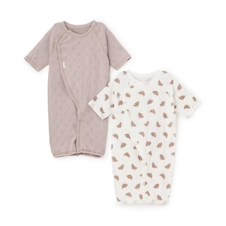 股部分のスナップボタンの留め方を変えれば、パンツ型とドレス型の2通りの着せ方が可能。