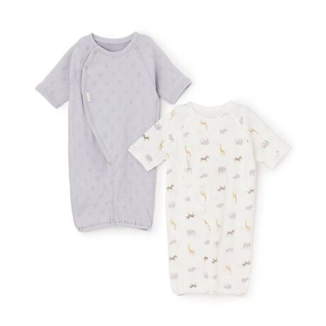股部分のスナップボタンの留め方を変えれば、パンツ型とドレス型の2通りの着せ方が可能。