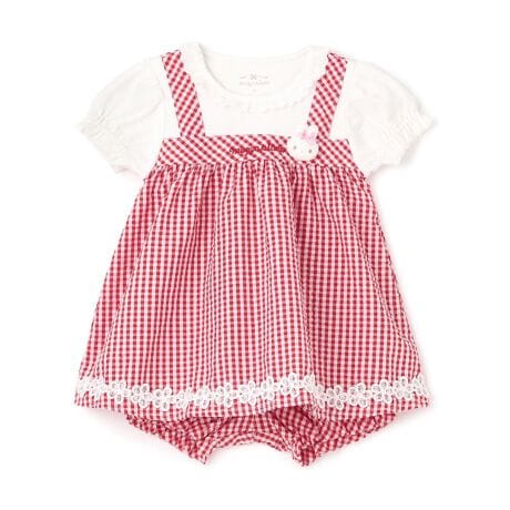 ギンガムのレイヤード風チュニックと同生地を使ったブルマのセットアップです。胸にメゾピアノオリジナルの立体的なうさぎマスコット、裾にはお花のレースをつけました。上下それぞれ単品使いできるセパレートタイプなので、幅広い着こなしを楽しめるのも魅力。お出かけコーデが即決まる、デイリー使いにぴったりなアイテムです。【おすすめの着用時期は春夏シーズン】