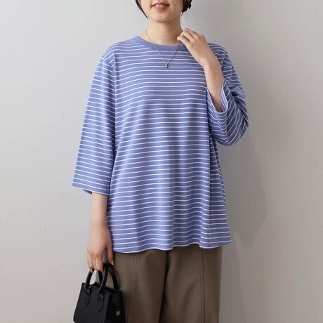 手首が見える7分袖は、コーディネートに抜け感を与え、すっきりとした印象に見せてくれます。