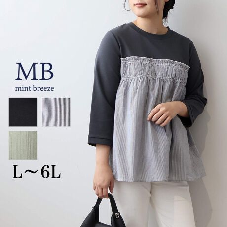 マルイウェブチャネル   /   エムビー ミントブリーズ   /   トップス   /   Tシャツ・カットソー   /   【大きいサイズ】レイヤード風シャーリングプルオーバー