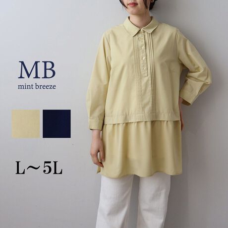 まるでインナーを重ね着しているかのような、一枚でコーディネートが完成するドッキングデザインのチュニックブラウス。