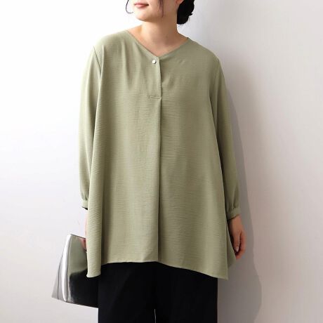 顔周りすっきり、一枚で着映える。上品スキッパーチュニックブラウス