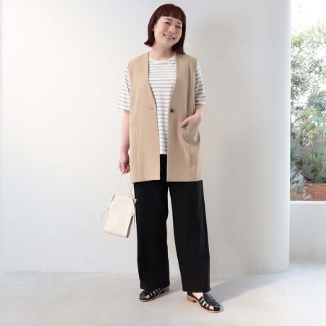 そこから下は、太ももやふくらはぎのラインを拾わずにストンと落ちるストレートワイドシルエットで、脚をまっすぐ綺麗に見せてくれます。