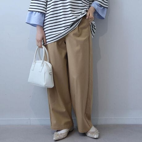 カジュアルなイージーパンツの楽さと、キレイめなスラックスの美しさを兼ね備えたストレートシルエットのワイドパンツです。