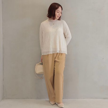 シャツや、シンプルなニットをインして着用いただくと、脇のパイピング切替えがアクセントとなり、リラクシーなのに手抜き感のない上品なキレカジスタイルが完成します。